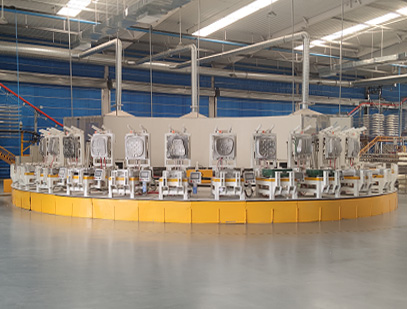 弗雷特聚氨酯環(huán)形生產(chǎn)線是一種多用途的模具傳送線,適合用于多品種批量生產(chǎn)。如汽車、觀光車座椅、摩托車座椅、汽車內(nèi)飾件PU發(fā)泡。轉(zhuǎn)盤直徑從2米到12米根據(jù)客戶需求定制。轉(zhuǎn)盤是通過減速機(jī)驅(qū)動,速度用變頻器無極調(diào)速,在轉(zhuǎn)盤放置液壓或氣動模架,自動開、合模。采用機(jī)器人智能方式或者人工澆注。結(jié)構(gòu)簡單,生產(chǎn)效率高,維護(hù)方便,被廣泛采用.......