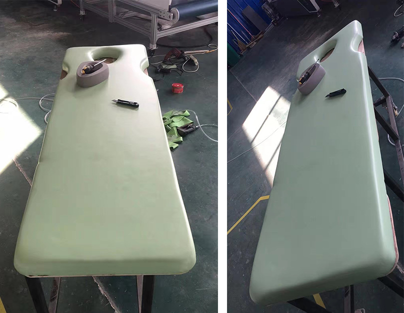 自吸皮工藝:將特殊的皮革加溫后用真空吸附再摸具腔內(nèi),再灌注原料,使原料和皮革牢固的粘合再一起,形成各種帶凹凸的造型。