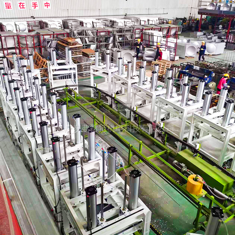 整條保溫水箱環(huán)形生產(chǎn)線共15個(gè)工位,放置了氣動高壓聚氨酯保溫水箱發(fā)泡模具模架。從整體框架焊制,到電氣安裝設(shè)置,全都是由我們弗雷特設(shè)計(jì)安裝。這款氣動模具模架,可自動上下升降,也帶有臨時(shí)控制按鈕,十分高效便利。保溫水箱發(fā)泡生產(chǎn)設(shè)備,全套定制,方案、設(shè)計(jì)、制造、安裝,一條龍服務(wù)。