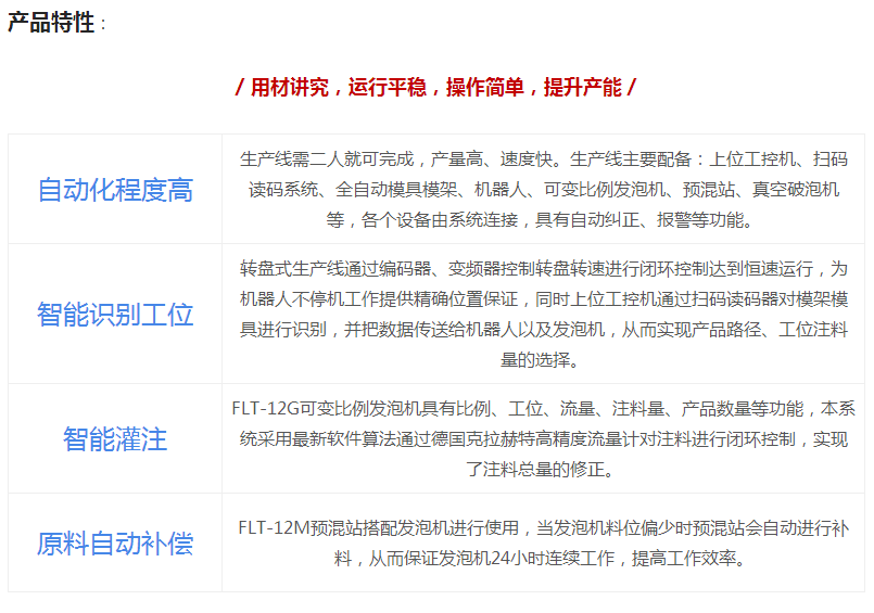 熱門關鍵詞:聚氨酯發泡機 | 發泡模具模架 | 發泡生產線 | 原料儲存預混 | 機器人自動化 | 主要配件