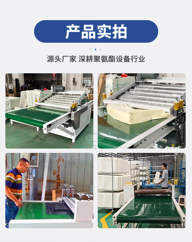 通過上下相互嚙合的壓輥組進行擠壓,將制品中的氣泡擠破,且氣泡破孔小,撤壓后材質的硬度幾乎沒有變化,保證了制品的高緩沖、慢回彈的特性。