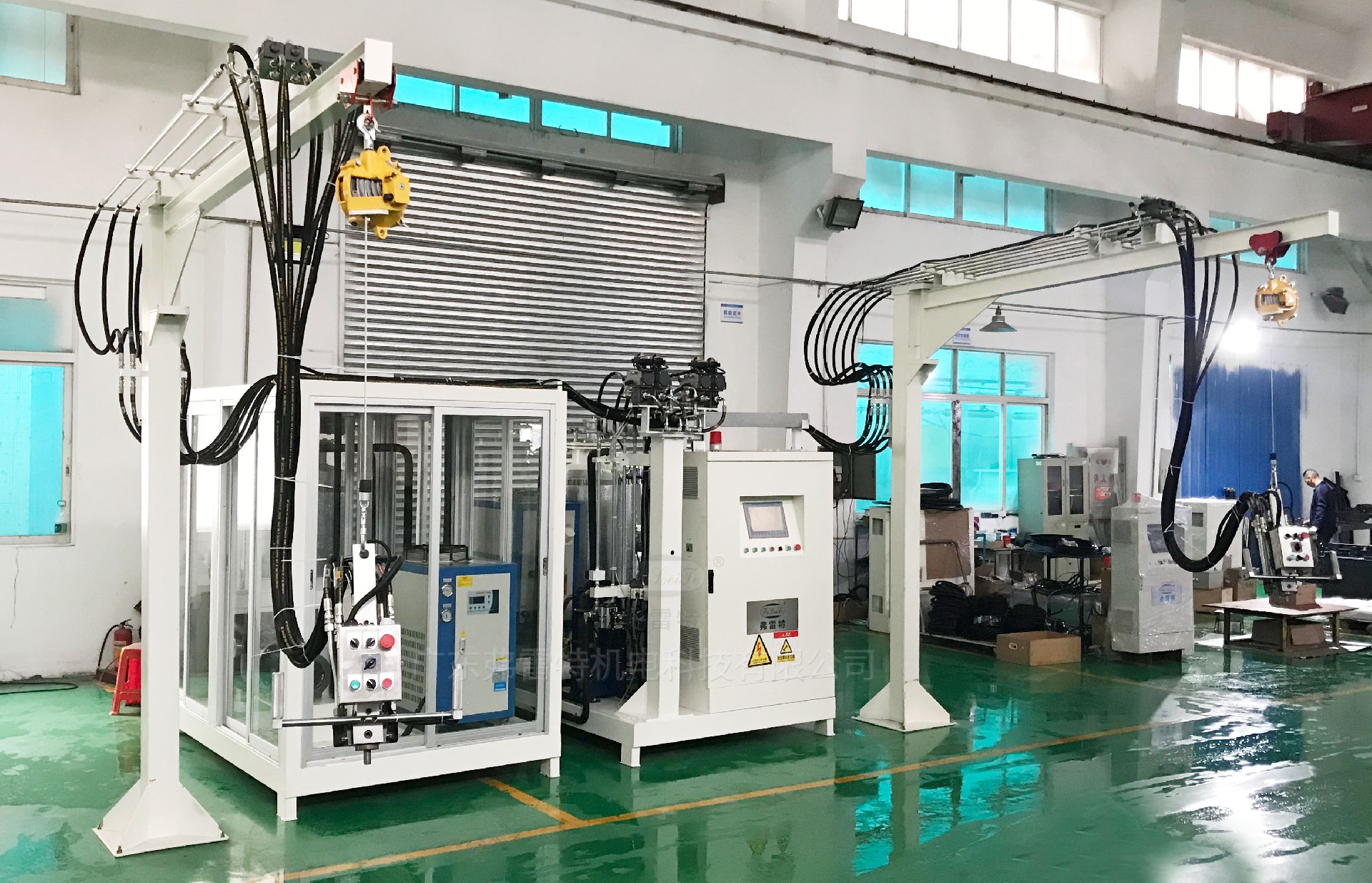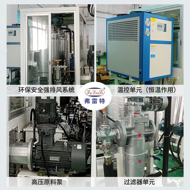 2、雙恒溫控制:采用雙冷熱一體機(jī),配合冷熱交換器,確保原料溫度恒定,誤差<±2℃ ,提高制品發(fā)泡質(zhì)量。