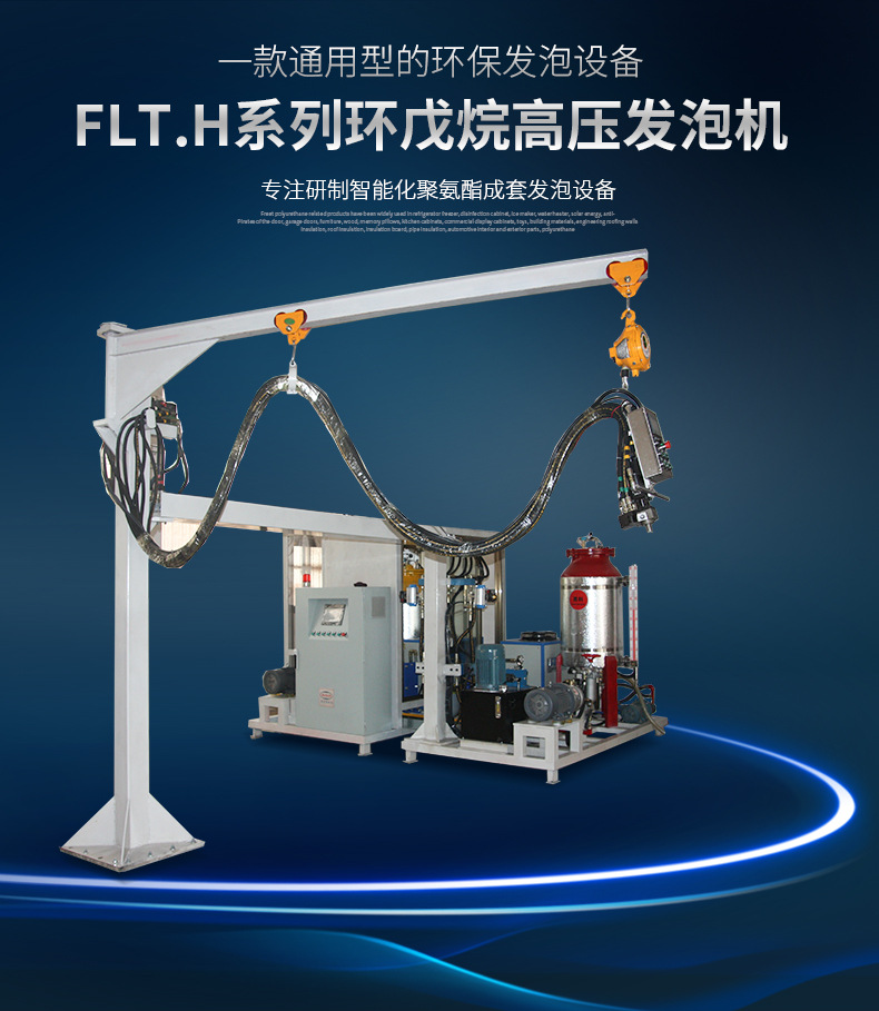該系列發泡機型有FLT.H-06/12/28/55,環戊烷作為硬質聚氨酯泡沫的新型發泡劑,用于替代對大氣臭氧層有破壞作用的氯氟烴(CFCS),現已廣泛應用于生產無氟冰箱、冰柜行業以及冷庫、管線保溫等領域。無氟發泡及環戊烷安全檢測,警報及處理系統令環戊烷發泡機的使用變得更加安全和可靠,隨著蒙特利兒等公約規定的禁用ODS期限的臨近,CFCr和HCFCs類產品不久將被禁用,環戊烷將成為聚氨酯發泡劑領域的主角。因此,環戊烷發泡機用途相當廣泛,滿足市場需求,順應環保趨勢。