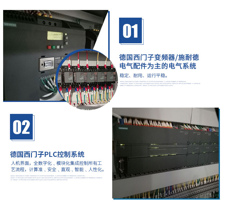 電氣控制:采用質量可靠的配置,以西門子PLC、施耐德配件為主要基礎。