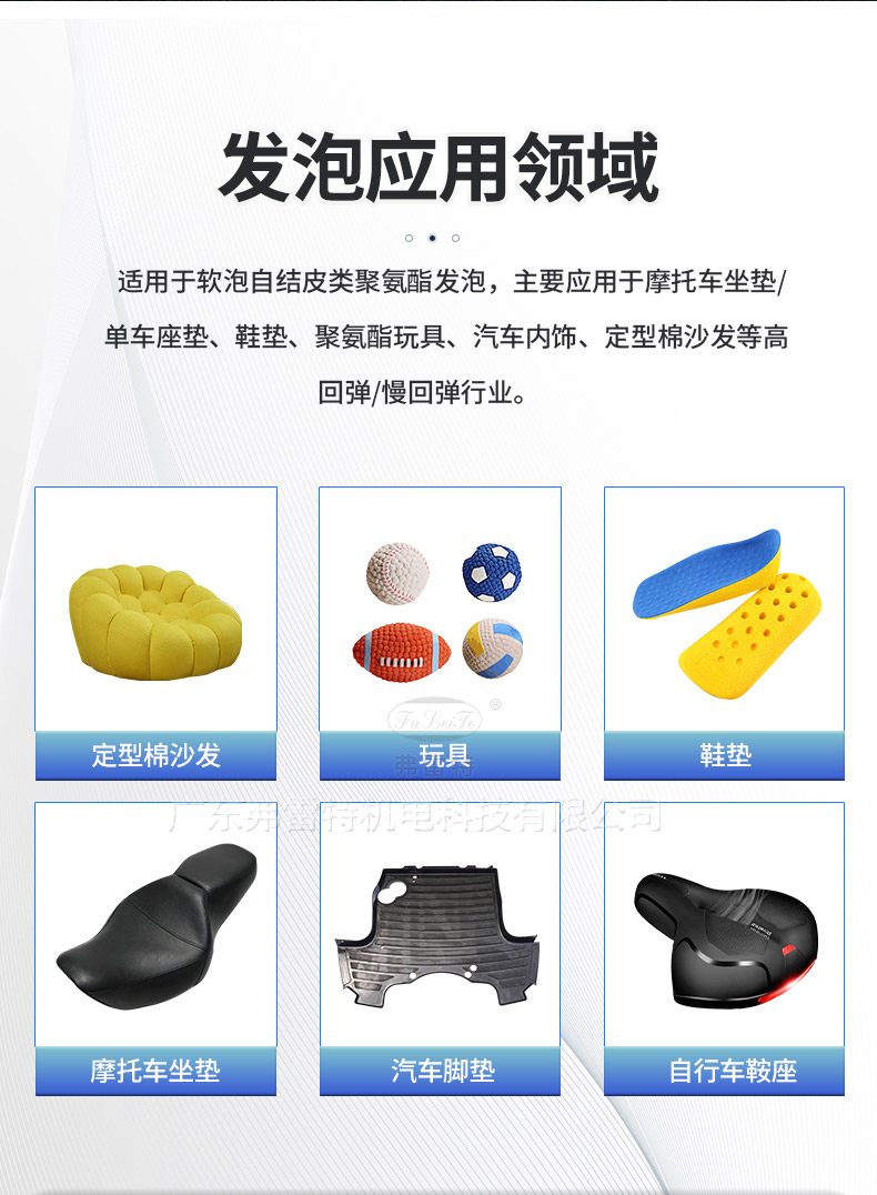 主要應用于枕頭/耳機塞/鞋墊/美妝蛋/小玩具球等高回彈/慢回彈行業