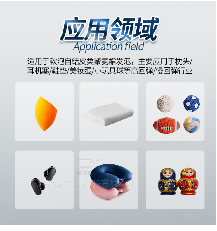 適用于軟泡自結皮類聚氨酯發泡,主要應用于枕頭/耳機塞/鞋墊/美妝蛋/小玩具球等高回彈/慢回彈行業